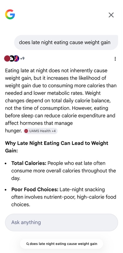 After completing this process, I concluded that the claim is misleading rather than completely true or false. Eating late at night does not directly cause weight gain. Instead, weight gain is mainly determined by total calorie intake and physical activity. However, eating late at night can lead to behaviors like overeating or unhealthy snacking which may contribute to weight gain over time.